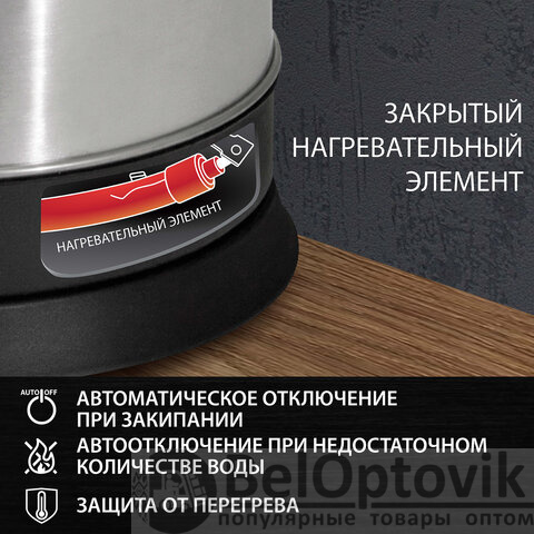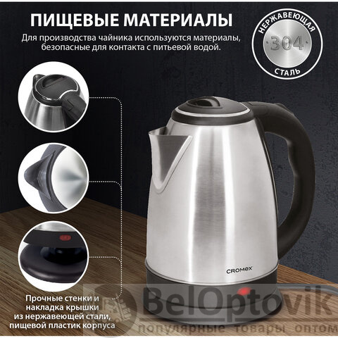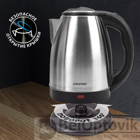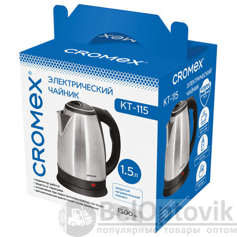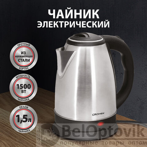 Чайник CROMEX KT-115, 1,5 л, 1500 Вт, закрытый нагревательный элемент, нержавеющая сталь, серебристый, 452925