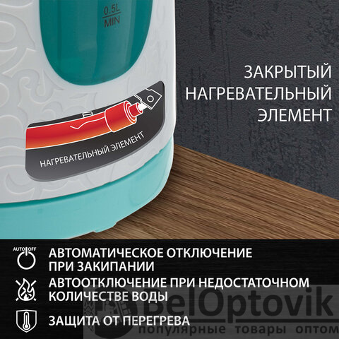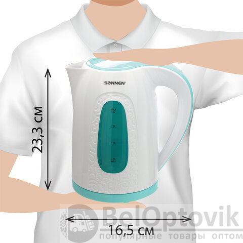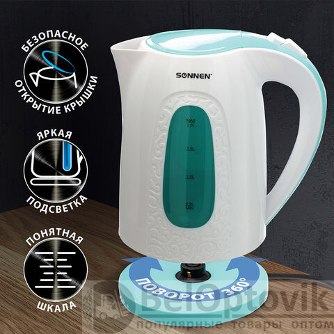 Благодаря своему дизайну и необычному узору на корпусе, электрический чайник SONNEN KT-2016 отлично подойдет для дома и офиса.