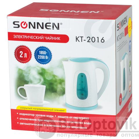 Чайник SONNEN KT-2016 имеет большой объем - 2 л! Не отказывайте себе в удовольствии и приобретите его прямо сейчас!