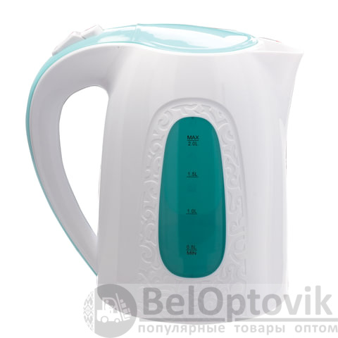 Он имеет увеличенный объем 2 литра, а мощность 2200 Вт позволяет вскипятить воду за считанные минуты. Индикатор уровня воды позволит с легкостью определить количество воды в чайнике. Сменный нейлоновый фильтр предотвратит попадание накипи в напиток. На ручке чайника находится кнопка открывания крышки, что делает удобнее его эксплуатацию. Автоотключение при недостаточном количестве воды и защита от перегрева делают данную модель чайника безопасной в использовании. Подсветка проинформирует о том, что чайник включен и процесс нагрева воды запущен. Шнур чайника, при необходимости, можно спрятать в специальный отсек, расположенный в подставке.