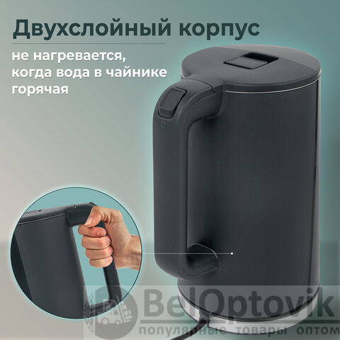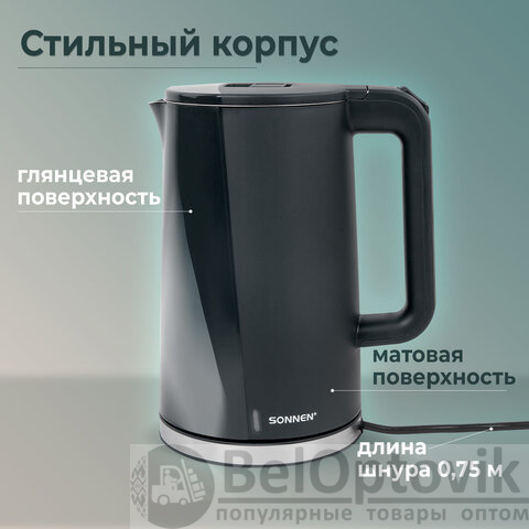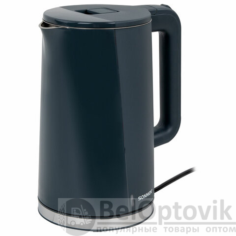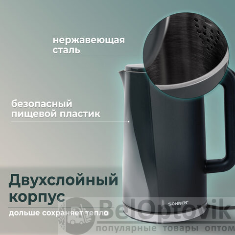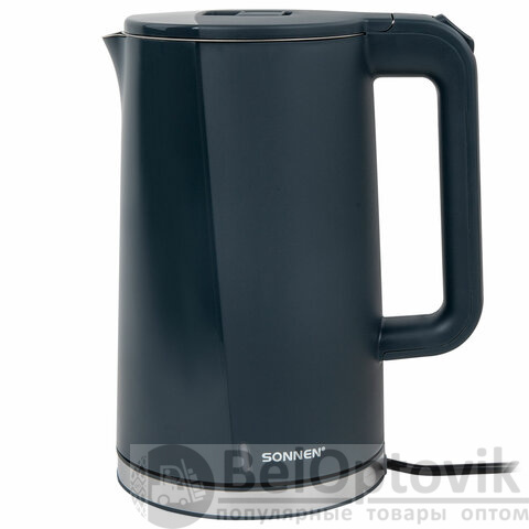 Чайник электрический с двойными стенками SONNEN KT-8718B, 1,7 л, 2200 Вт, графитовый, 454686