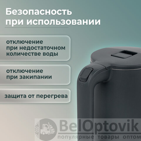 Чайник безопасен при использовании, так как имеет автоотключение при недостаточном количестве воды и защиту от перегрева.