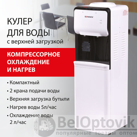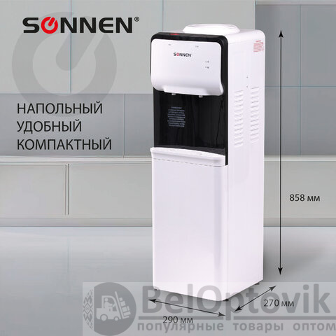 Кулер для воды SONNEN FSC-02S, напольный, НАГРЕВ/ОХЛАЖДЕНИЕ КОМПРЕССОРНОЕ, 2 крана, белый, 455415