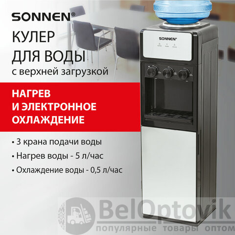 Кулер SONNEN FSE-03Ri – это бесперебойный источник питьевой воды. Позаботьтесь о своих сотрудниках и приобретите его уже сегодня!