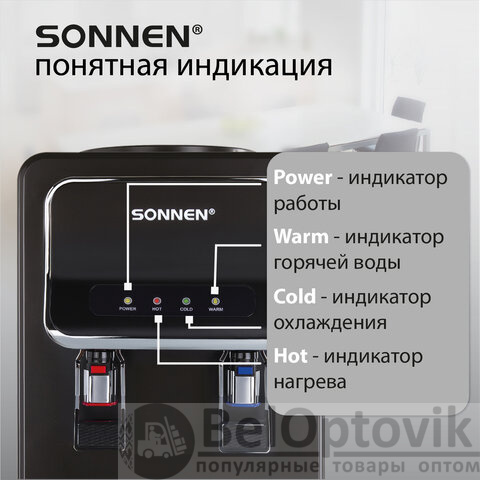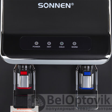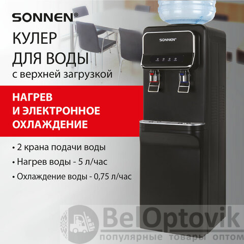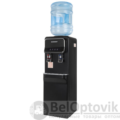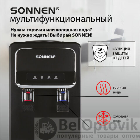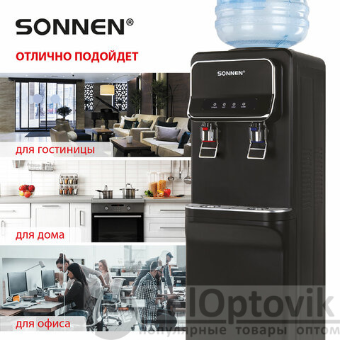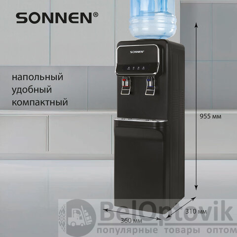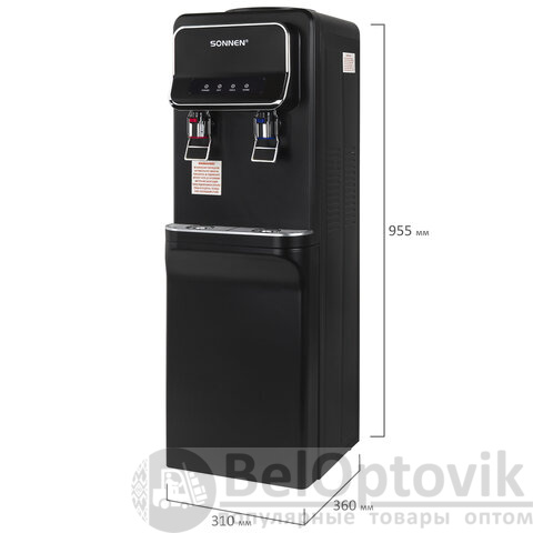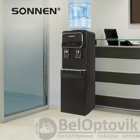 Кулер для воды SONNEN FSE-02WBc, напольный, НАГРЕВ/ОХЛАЖДЕНИЕ ЭЛЕКТРОННОЕ, шкаф, 2 крана, черный, 456168