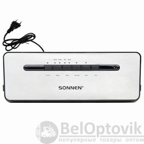 Кнопочная панель управления делает использование SONNEN VS-903 простым и интуитивно понятным, а надежная запайка пакетов шириной шва 2,5 мм гарантирует максимальную защиту и сохранность продуктов.