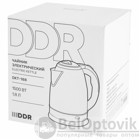Чайник DDR DKT-188 - незаменимый помощник на офисной или домашней кухне. Прочный серебристый корпус из нержавеющей стали с черными вставками прекрасно впишется в любой интерьер.