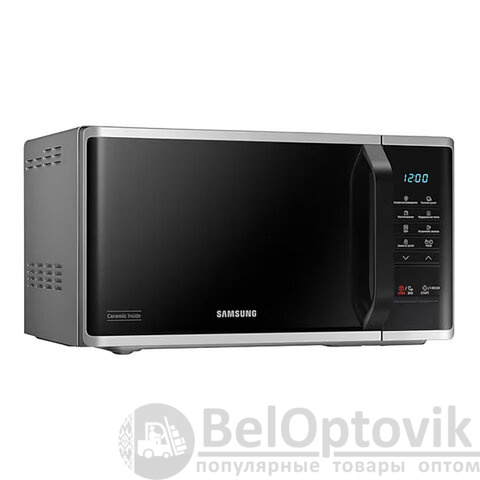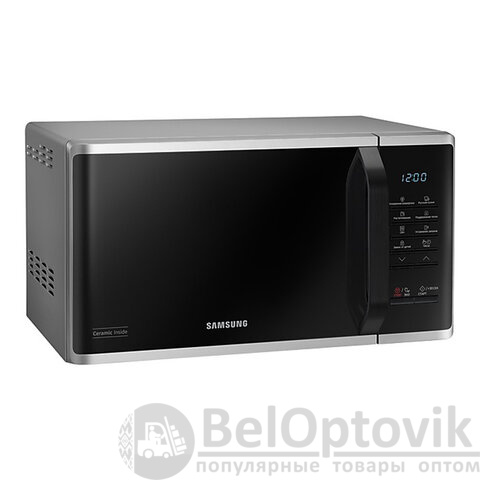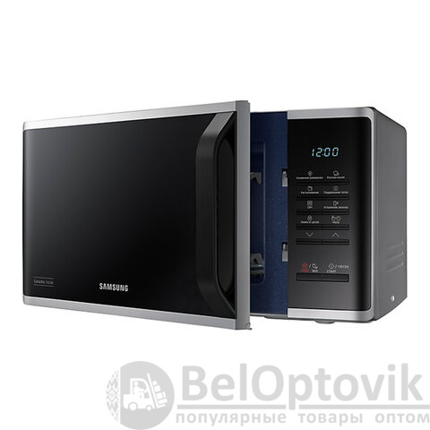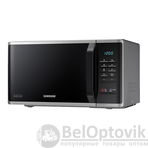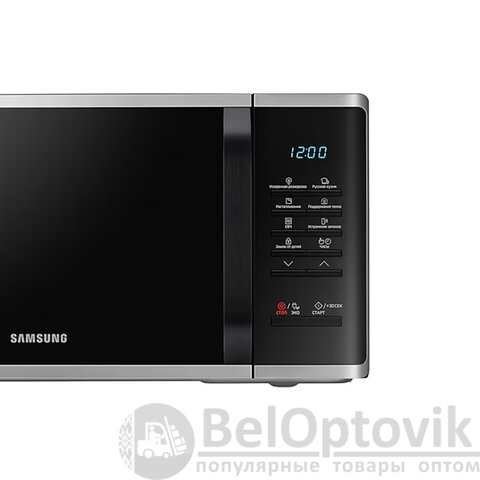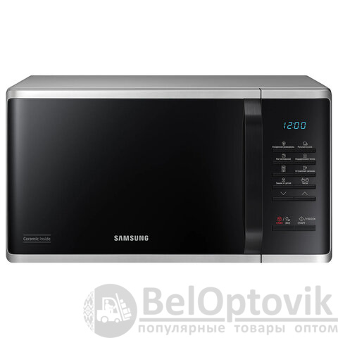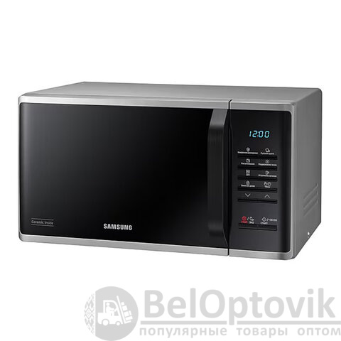 Микроволновая печь SAMSUNG MS23K3513AS/BW в серебряном корпусе с объемом камеры 23 литра и мощностью 800 Вт за считанные минуты разогреет, разморозит и даже приготовит требуемое блюдо.