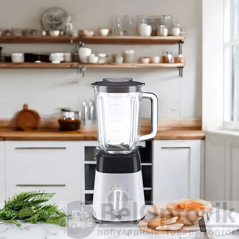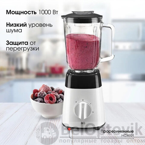 Блендер стационарный BQ (БИ-КЬЮ) SB1008, 1000 Вт, 2 скорости, чаша 1,5 л, пластик, черный/белый, 86192480
