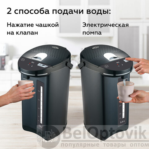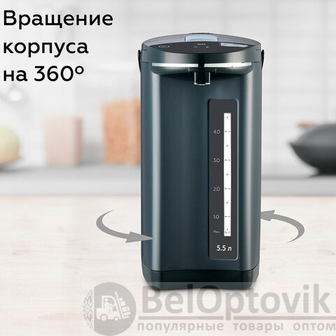 Объединяя в себе функции чайника и термоса, этот прибор обладает внушительным объемом 5,5 литров, что делает его идеальным для большой семьи или офиса.
