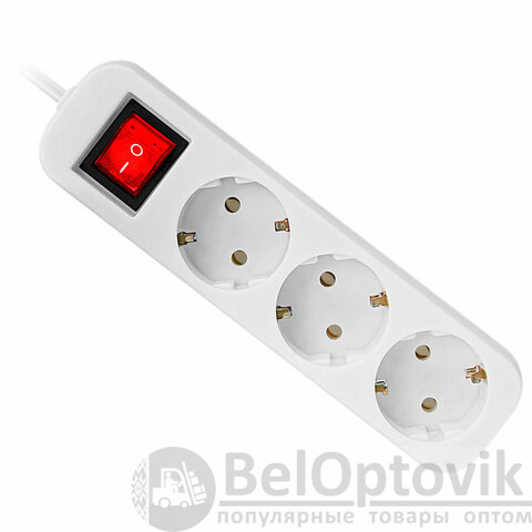 Сетевой удлинитель в пластиковом корпусе оснащен 3 розетками с заземлением. Корпус выполнен из негорючего пластика. На корпусе расположен выключатель. Толщина жил кабеля – 3х1 мм, длина кабеля – 1,8 м. Номинальная частота – 50 Гц, номинальное напряжение – 230 Вт, максимальный ток нагрузки – 10 А, суммарная мощность нагрузки – 2200 Вт.