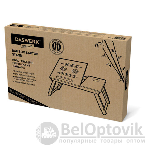 Столик БАМБУКОВЫЙ складной для ноутбука/завтрака, DASWERK, 532582