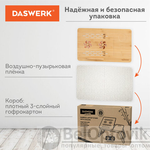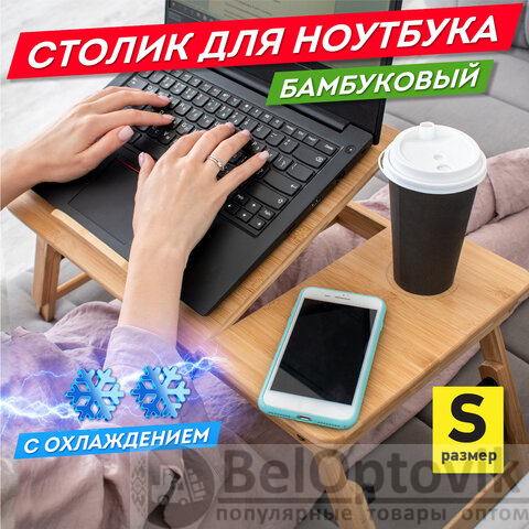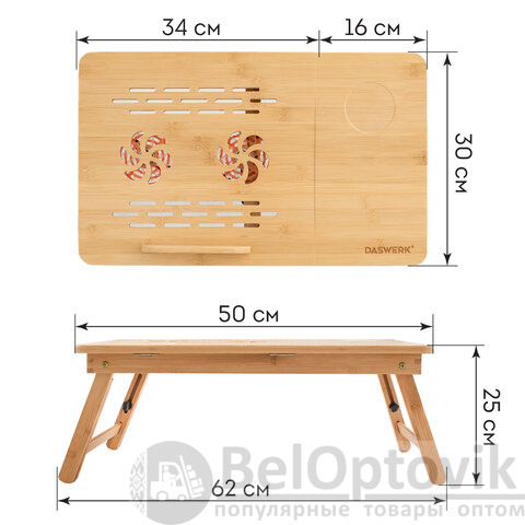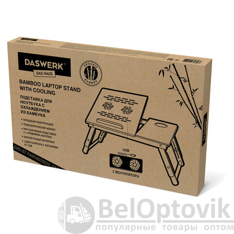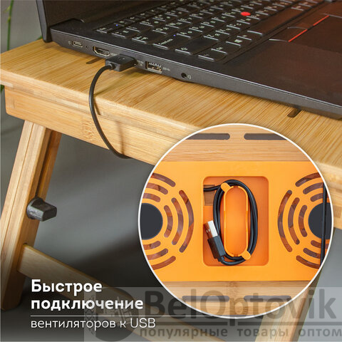 Столик БАМБУКОВЫЙ складной для ноутбука/завтрака, с охлаждением, DASWERK, 532583