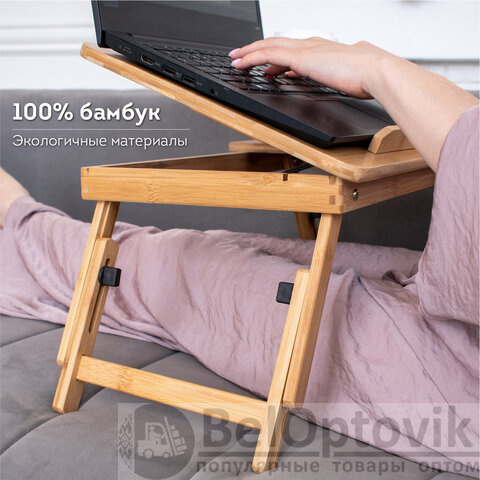 Столик-трансформер из бамбука подойдет для ноутбука, планшета или завтрака в постель. Изготовлен из высококачественного натурального бамбука сорта MOSO. Это экологичный, долговечный, антисептический материал. Классический дизайн столика хорошо впишется в любой интерьер.