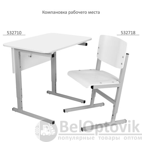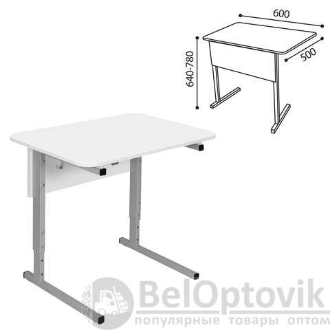 Стол-парта 1-местный регулируемый СУТ.54, 600х500х640-780 мм, рост 4-6, серый каркас, ЛДСП белая
