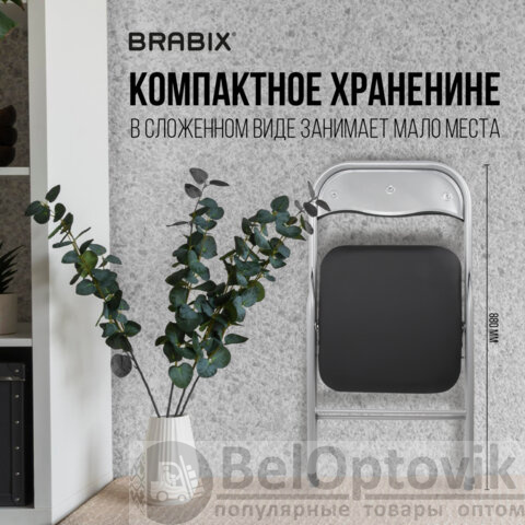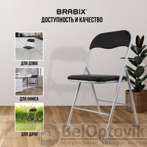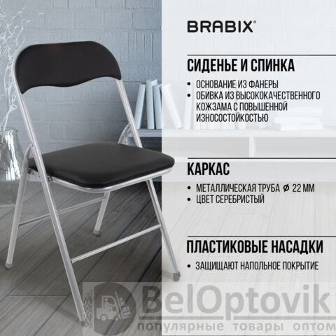 Стул складной BRABIX "Golf CF-007", серебристый каркас, кожзам чёрный, 532891