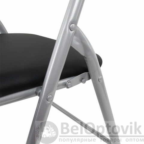 Материал обивки - качественный кожзаменитель с повышенной износостойкостью. Складная конструкция сэкономит место при перевозке и хранении. Доступная цена позволит сэкономить бюджет. Прочная металлическая рама обеспечит долговечность эксплуатации, а пластиковые насадки на ножках не дадут испортить напольное покрытие. В набивке спинки и сиденья использован поролон высокой плотности. Стул способен выдерживать нагрузку до 110 кг.