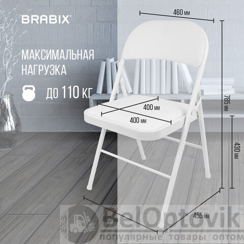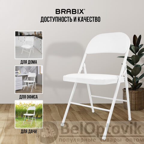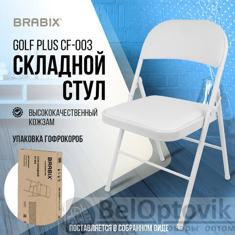Стул складной BRABIX "Golf Plus CF-003 КОМФОРТ", белый каркас, кожзам белый, В КОРОБЕ, 533028