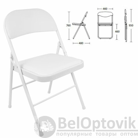 Материал обивки — качественный кожзаменитель повышенной износостойкости. Складная конструкция экономит место при перевозке и хранении. Прочная металлическая рама и металлическое основание сиденья обеспечивают долговечность эксплуатации, а пластиковые насадки на ножках защищают напольное покрытие от повреждений. В набивке спинки и сиденья использован поролон высокой плотности. Стул выдерживает нагрузку до 110 кг. Для дополнительной сохранности он упакован в индивидуальную картонную коробку.