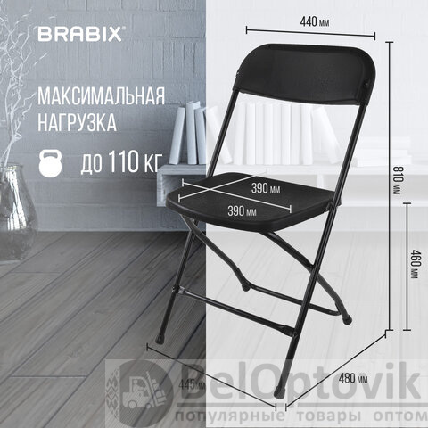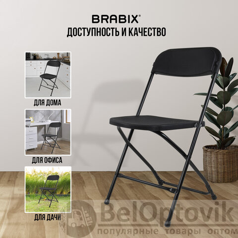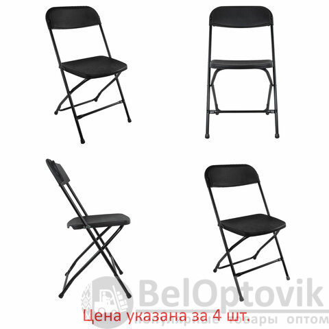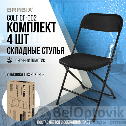 Стулья складные BRABIX "Golf CF-002", КОМПЛЕКТ 4 шт., черный каркас, пластик черный, 533030