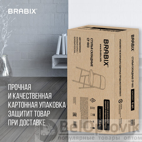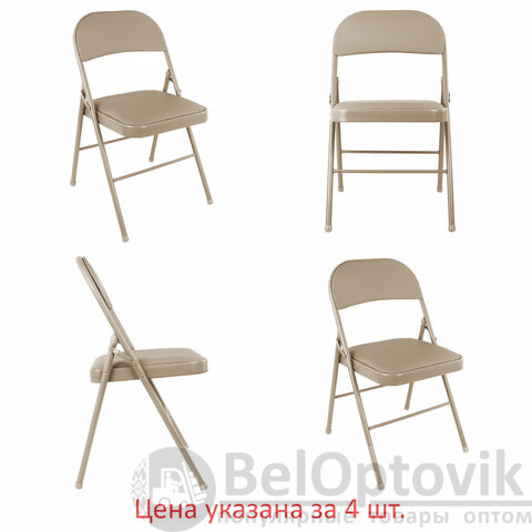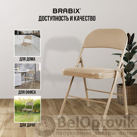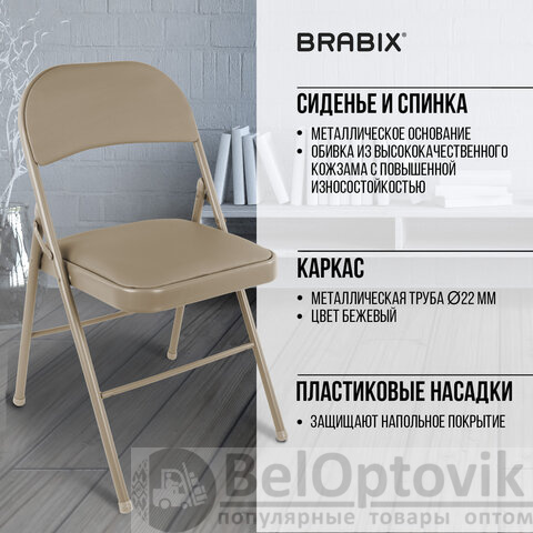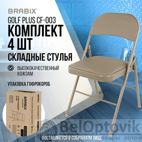 Стулья складные BRABIX "Golf Plus CF-003" КОМФОРТ, КОМПЛЕКТ 4шт., бежевый каркас, кожзам бежевый, 533033