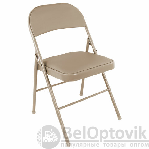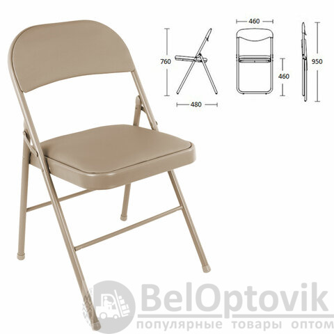 Материал обивки — качественный кожзаменитель повышенной износостойкости. Складная конструкция экономит место при перевозке и хранении. Прочная металлическая рама и металлическое основание сиденья обеспечивают долговечность эксплуатации, а пластиковые насадки на ножках защищают напольное покрытие от повреждений. В набивке спинки и сиденья использован поролон высокой плотности. Стул выдерживает нагрузку до 110 кг. Для дополнительной сохранности комплект упакован в картонную коробку.
