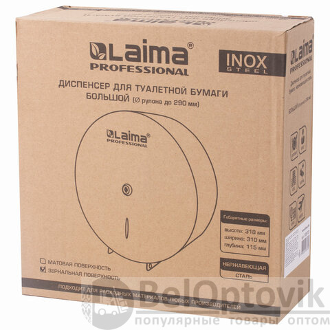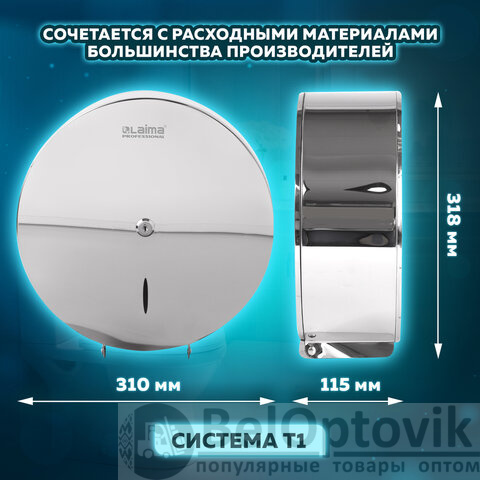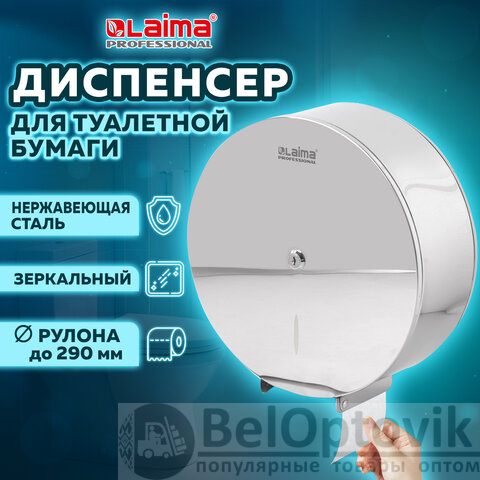 Диспенсер для туалетной бумаги LAIMA PROFESSIONAL INOX, (Система T1) БОЛЬШОЙ, нержавеющая сталь, зеркальный, 605701