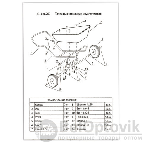 Тачка садово-строительная ТЕХ-ТОП 110 л предназначена для транспортировки различных грузов при хозяйственно-бытовых работах.