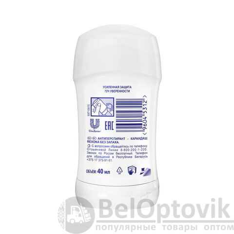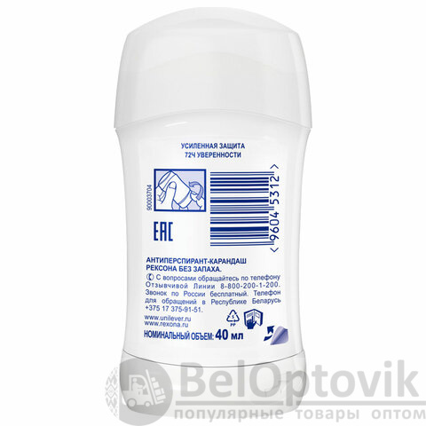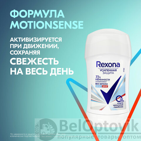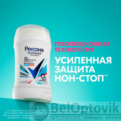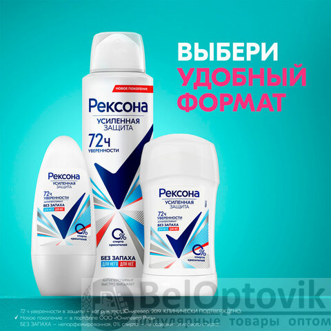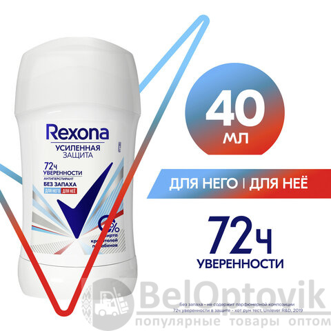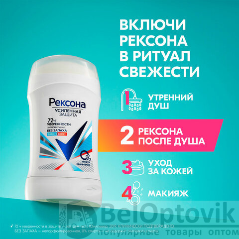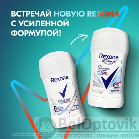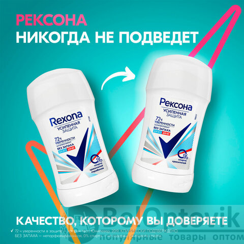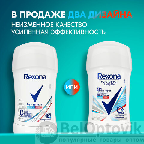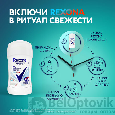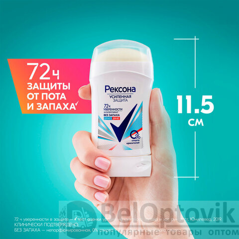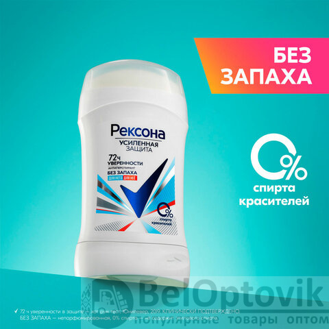 Дезодорант-антиперспирант карандаш РЕКСОНА "Без запаха" надежно защитит вас от пота и запаха в течение 72 часов.
