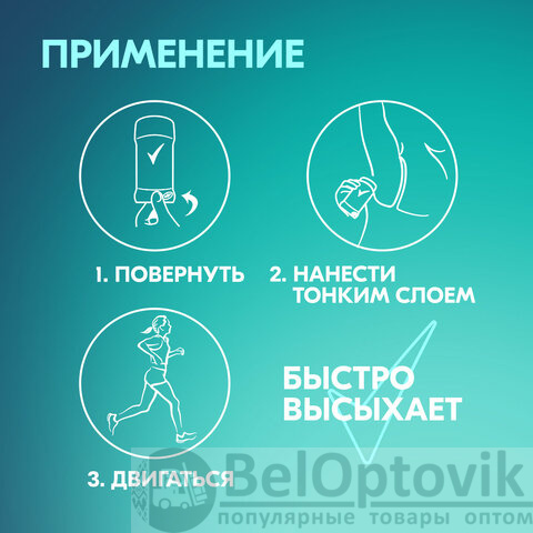Способ применения: поверните основание контейнера и проведите "карандашом" по чистой и сухой коже подмышек.