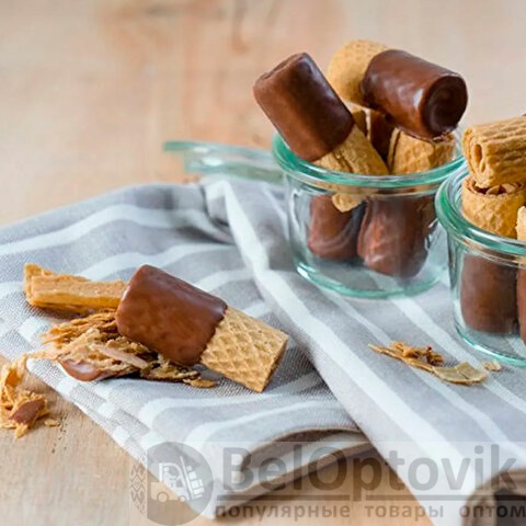 Нежные и хрустящие вафельные трубочки BAHLSEN "Waffeletten", наполовину покрытые превосходным молочным шоколадом.