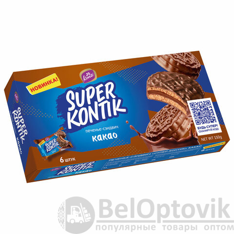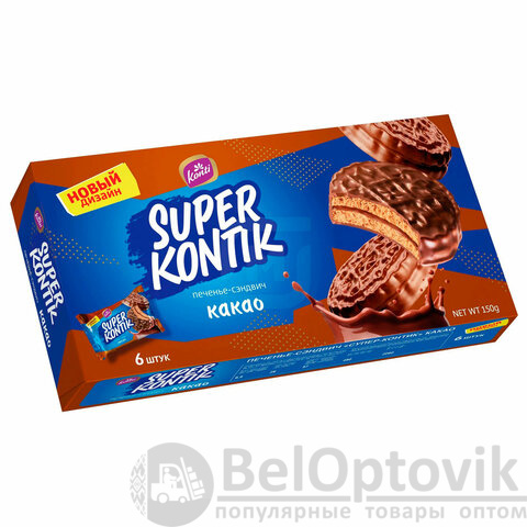 KONTI "Супер-Контик" – это два печенья, соединенные нежной начинкой шоколадного цвета с какао в глазури.