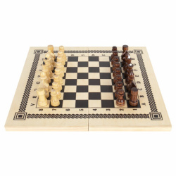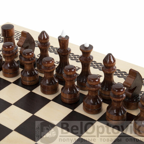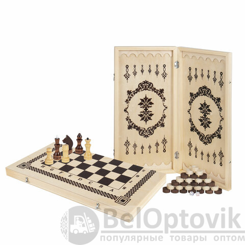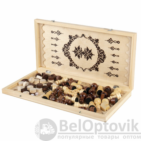 Шахматы, шашки, нарды 3 в 1 деревянные, лакированные, глянцевые, доска 40х40 см, ЗОЛОТАЯ СКАЗКА, 665364
