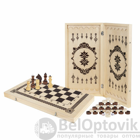 Шашки, шахматы и нарды ЗОЛОТАЯ СКАЗКА - три игры в одной коробке. Любая из них помогает развивать логическое и пространственное мышление, память. Идеальный набор для интеллектуального времяпрепровождения.