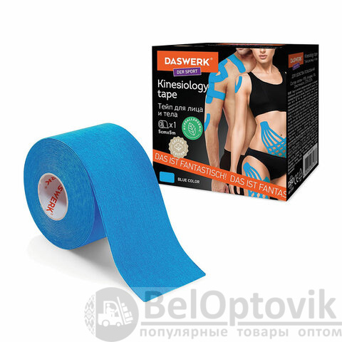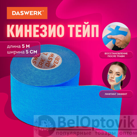 Кинезио тейп/лента для лица и тела, омоложение и восстановление, 5 см х 5 м, синий, DASWERK, 680007
