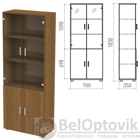Шкаф закрытый со стеклом "Канц", 700х350х1830 мм, цвет орех пирамидальный (КОМПЛЕКТ)