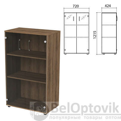Шкаф закрытый со стеклом "Приоритет", 720х424х1215 мм, 2 полки, лагос (КОМПЛЕКТ)
