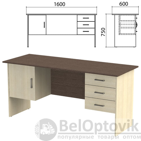 Стол письменный "Канц", 1600х600х750 мм, 2 тумбы, комбинированный, цвет венге/дуб молочный (КОМПЛЕКТ)