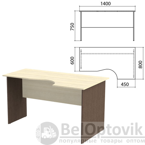Стол письменный эргономичный "Канц", 1400х800х750 мм, правый, цвет дуб молочный/венге (КОМПЛЕКТ)