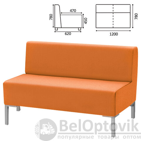 Диван мягкий двухместный "Хост" М-43, 1200х620х780 мм, без подлокотников, экокожа, оранжевый