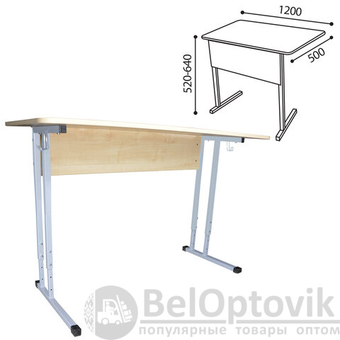 Стол-парта 2-местный регулируемый "Умник", 1200х500х520-640 мм, рост 2-4, серый каркас, ЛДСП клён