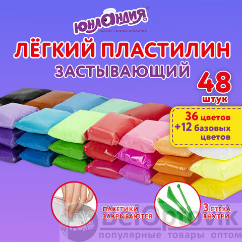 Пластилин супер легкий воздушный 48 штук (36 цветов + 12 базовых), 480 г, 3 стека, ЮНЛАНДИЯ, 106980