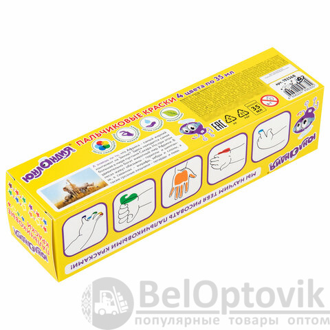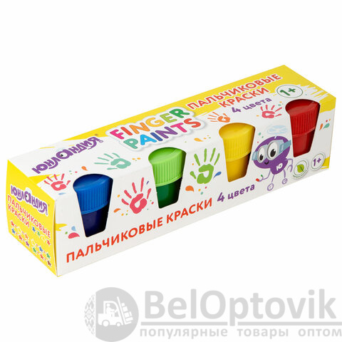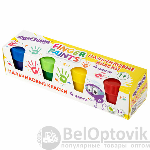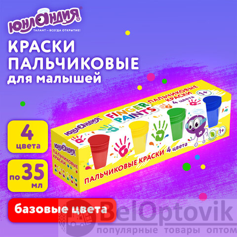 Краски пальчиковые для малышей от 1 года, классические цвета, 4 по 35 мл, ЮНЛАНДИЯ, 192568