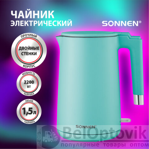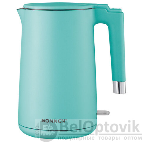 Чайник электрический с двойными стенками SONNEN KT-8719M, 1,5 л, 2200 Вт, мятный, 454694