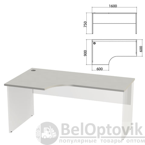 Столешница стола эргономичного "Этюд", 1600х900х750 мм, левый, серый, 401674-03