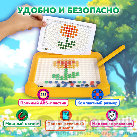 Мозаика магнитная развивающая для детей "Утенок", стилус, 101 магнит, 10 карточек, BAMBOX, 665888