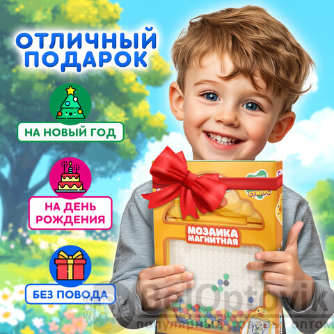 Магнитная мозаика — прекрасный подарок для любого ребёнка возрастом от трёх лет. Игра обеспечит безграничный простор для тренировки творческого мышления и внимания, а также станет идеальным спутником ребёнка в продолжительной поездке. Закажите сейчас!