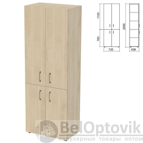 Шкаф предназначен для хранения документов, архивов и других предметов обихода. Использование совместно с дополнительными элементами (топом и декор. панелями) придает изделию более солидный и основательный внешний вид. Оборудован регулируемыми опорами.