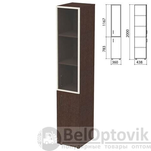 Шкаф закрытый со стеклом в алюминиевой рамке "Приоритет", правый 360х438х2000 мм, 4 полки, венге (КОМПЛЕКТ)