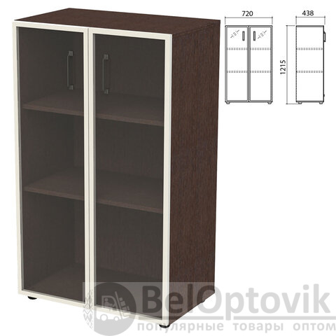 Шкаф закрытый со стеклом в алюминиевой рамке "Приоритет" 720х438х1215 мм, 2 полки, венге (КОМПЛЕКТ)
